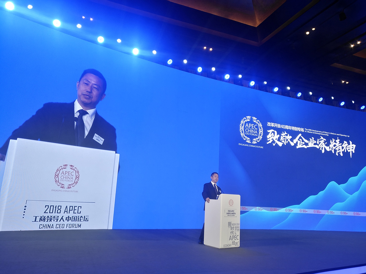 7月7日,中國民間商會副會長、APEC中國工商理事會副主席、紅豆集團(tuán)董事局主席兼CEO周海江在北京出席2018 APEC工商領(lǐng)導(dǎo)人中國論壇,