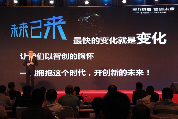通用股份董事長顧萃先生在會議上作了“賦能2018”的重要主題演講。回首2017,顧董對宏觀經濟和行業情況進行了生動解讀。展望2018,顧董以“大、新、快、鏈”四個字闡述了當下時代的發展趨勢,探討了智能化以及創新思維對未來工業和生活的深遠影響。通用股份將從“制造、產品、營銷、管理、服務”五大賦能促進變革發展,搶占先發優勢,智能制造升級,全球化視野布局,全方位提高效率,做最好的自己。
