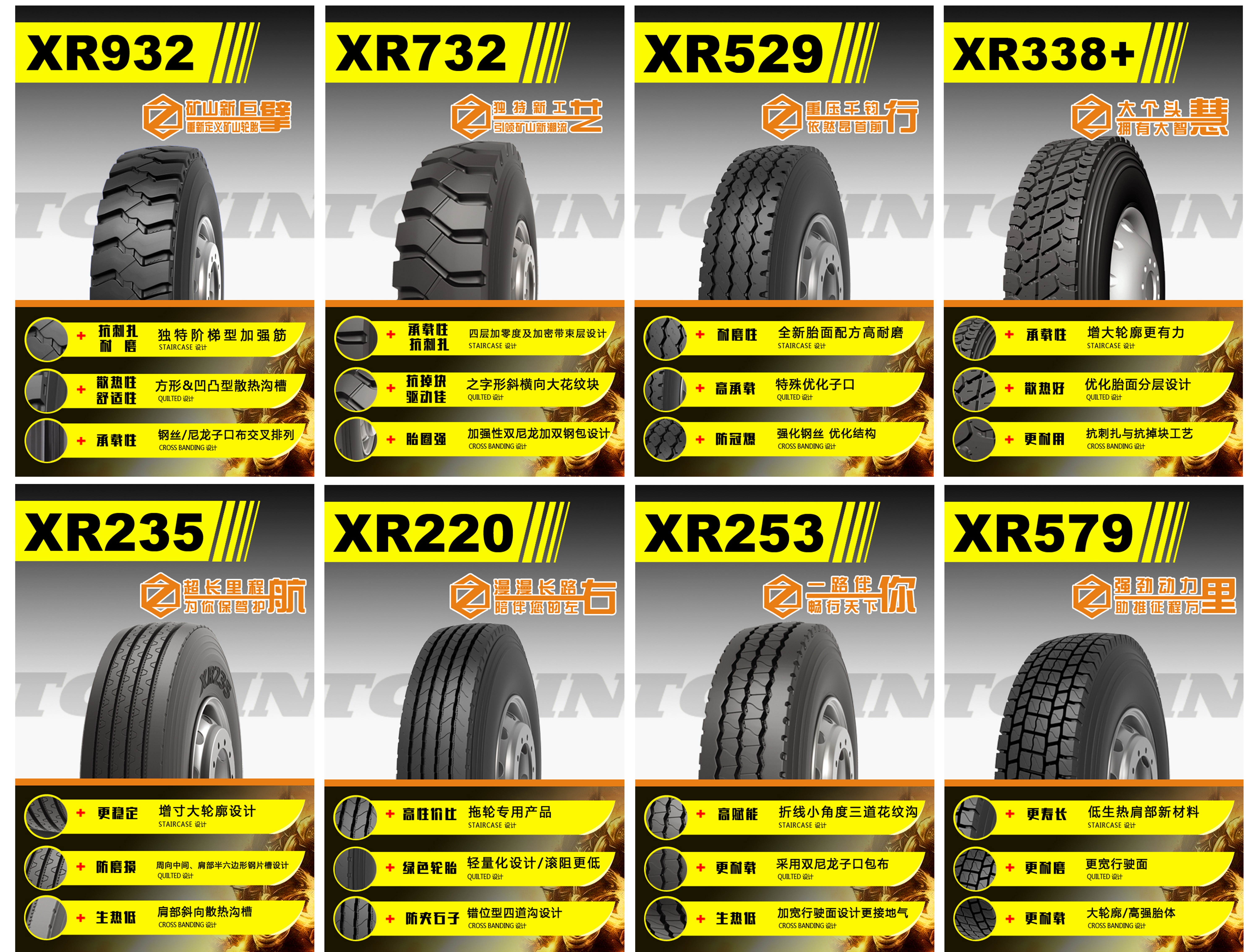 XR932具備獨特的階梯型加強筋設(shè)計,輪胎更抗刺扎、更耐磨,使用壽命更長,方形&凹凸型散熱溝槽,有效增強輪胎散熱性、舒適性,通過優(yōu)化鋼絲/尼龍子口布交叉排列,使輪胎具有卓越的承載性能。