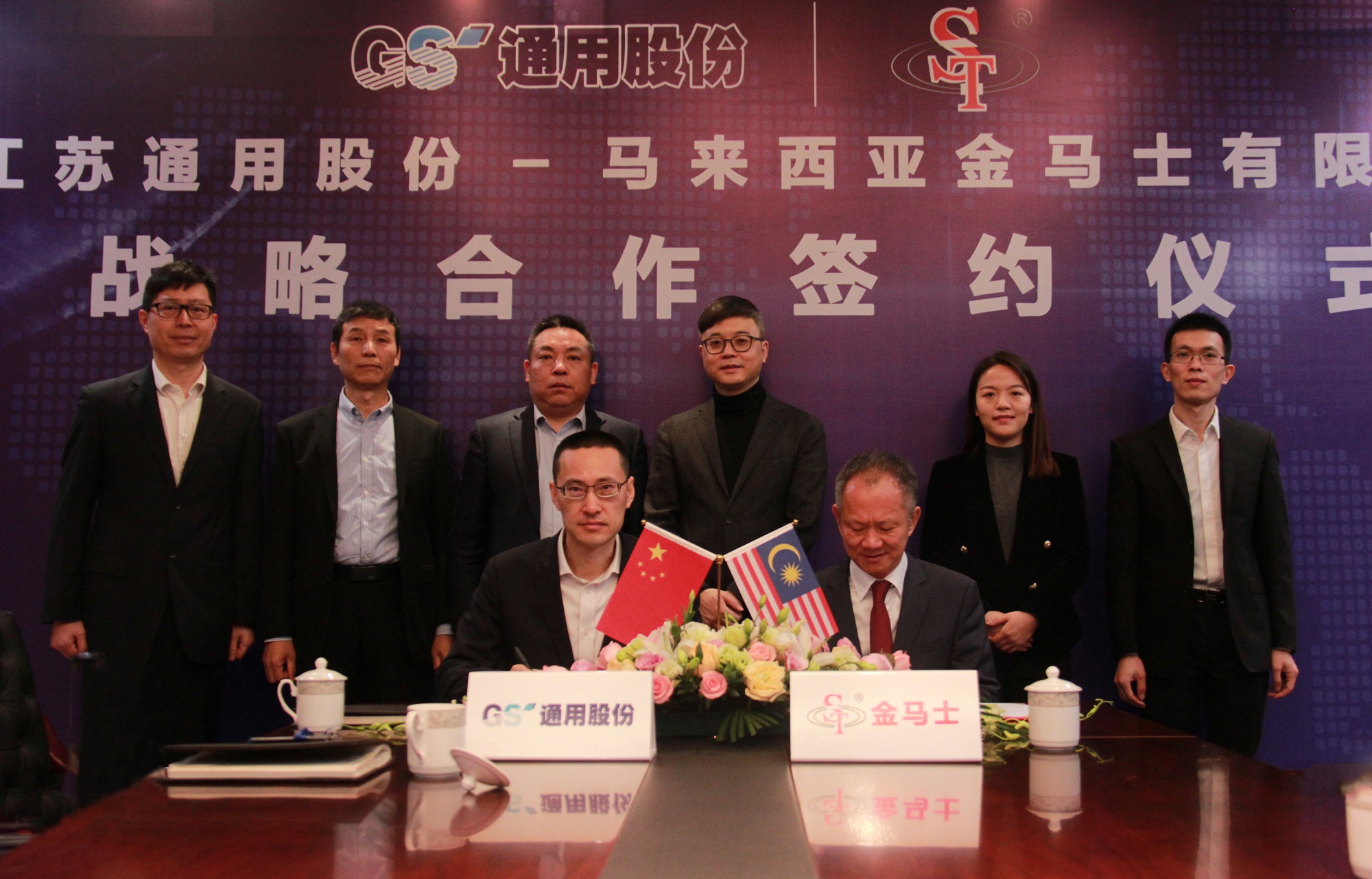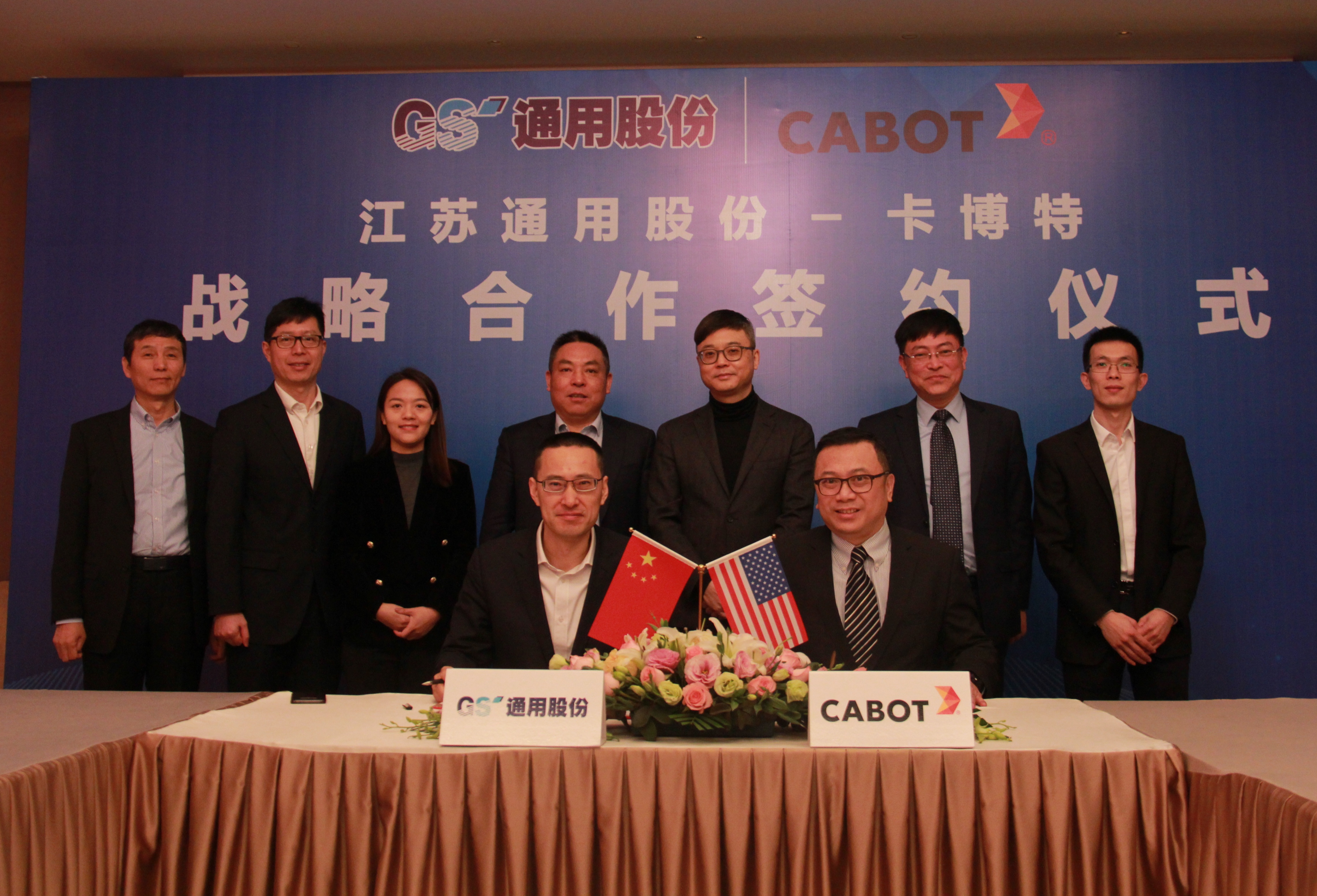 2019年3月22日,通用股份分別與輪胎供應鏈領域的兩大巨頭——卡博特、金馬士開展戰略合作簽約儀式。通用股份董事長顧萃、總經理王曉軍、常務副總經理程金元,卡博特全球副總裁陳敦孝、金馬士董事長余福來等出席簽約儀式。