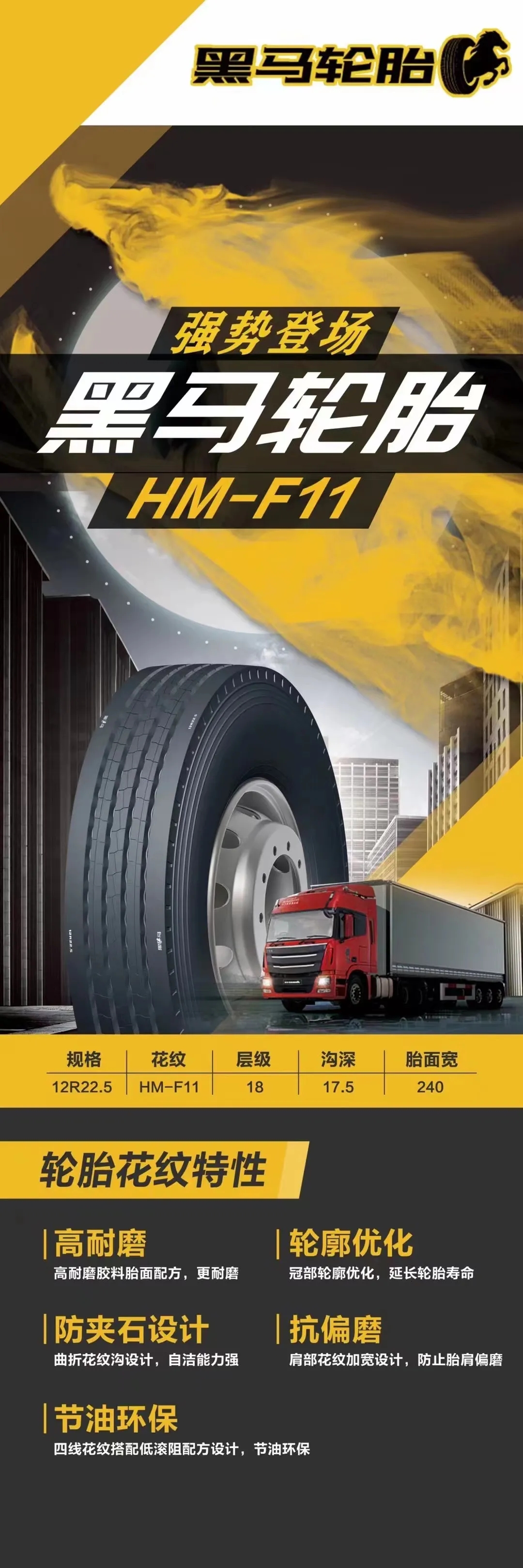 今年推出的黑馬輪胎HM-A33以其高顏值、高耐磨性、節(jié)油環(huán)保等特點(diǎn)獲得了市場一致好評。