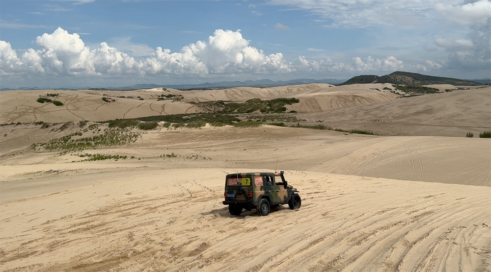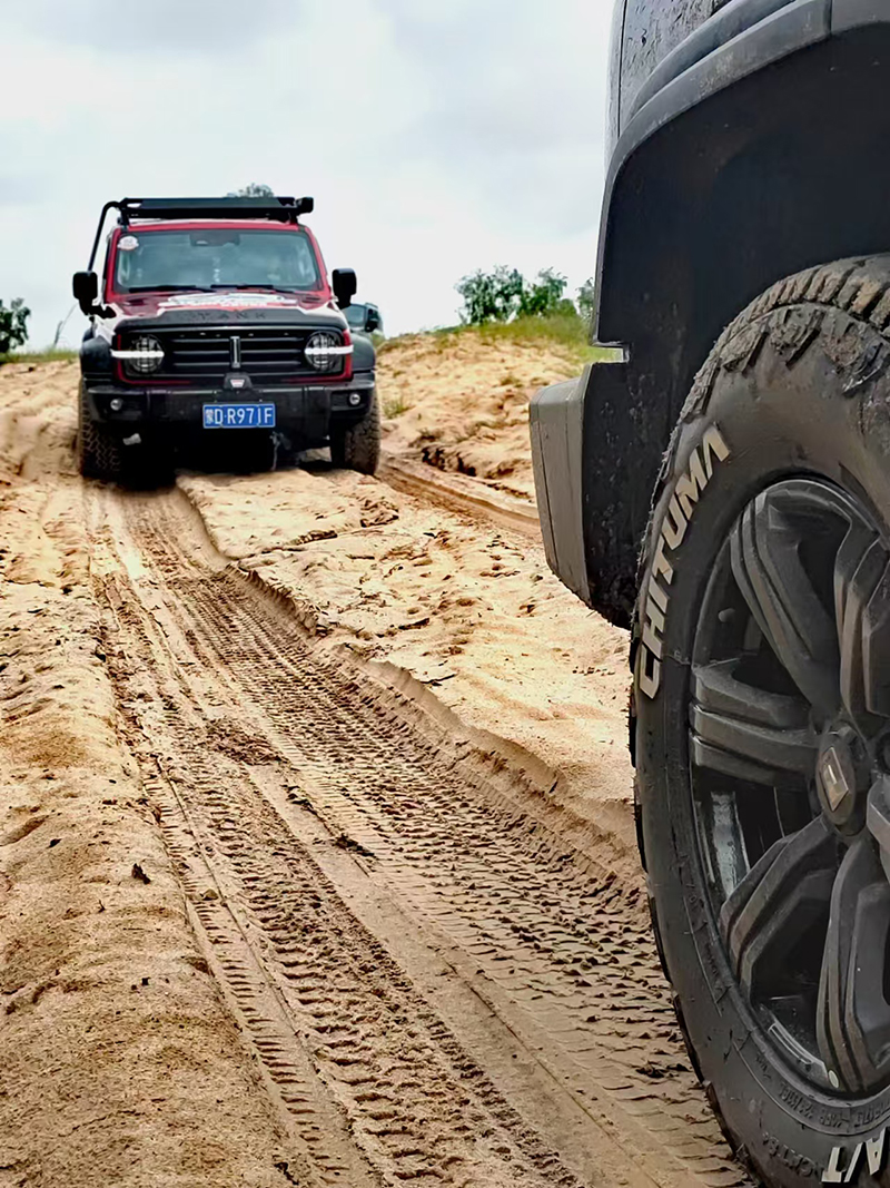 在玉龍沙湖,高達(dá)70-100米的沙丘成為了檢驗(yàn)輪胎性能的“試金石”。赤兔馬CAT8+輪胎采用高耐磨橡膠配方和胎肩立體防護(hù)設(shè)計(jì),帶來超強(qiáng)抓地力和自潔性能,即使面對(duì)陡坡沖沙也游刃有余,讓駕駛者盡享越野樂趣。
