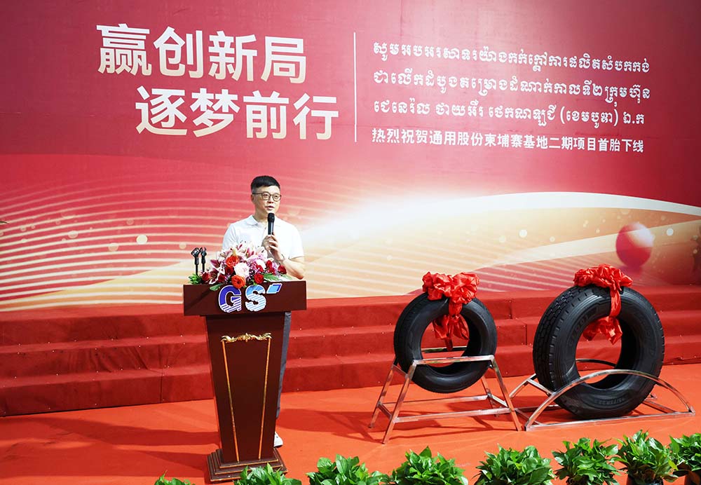 通用股份董事長顧萃在致辭中表示,近年來公司海外雙基地產(chǎn)銷兩旺、產(chǎn)品供不應求。柬埔寨二期項目首胎順利下線是通用股份國際化進程的又一重要里程碑,推動公司產(chǎn)業(yè)國際化、智能化、綠色化轉(zhuǎn)型再上新臺階。通用股份將堅定信心,勇?lián)刎煟铀偃蚧M程,加快轉(zhuǎn)型升級步伐,實現(xiàn)新的跨越式增長。