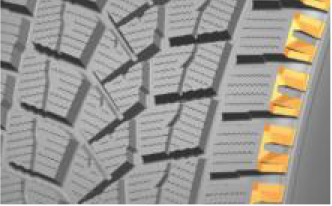 能夠將水膜切割開,抑制打滑現象,提升輪胎在冰雪路面的牽引、制動性能。引力,保障彎道行駛時候的穩定性。