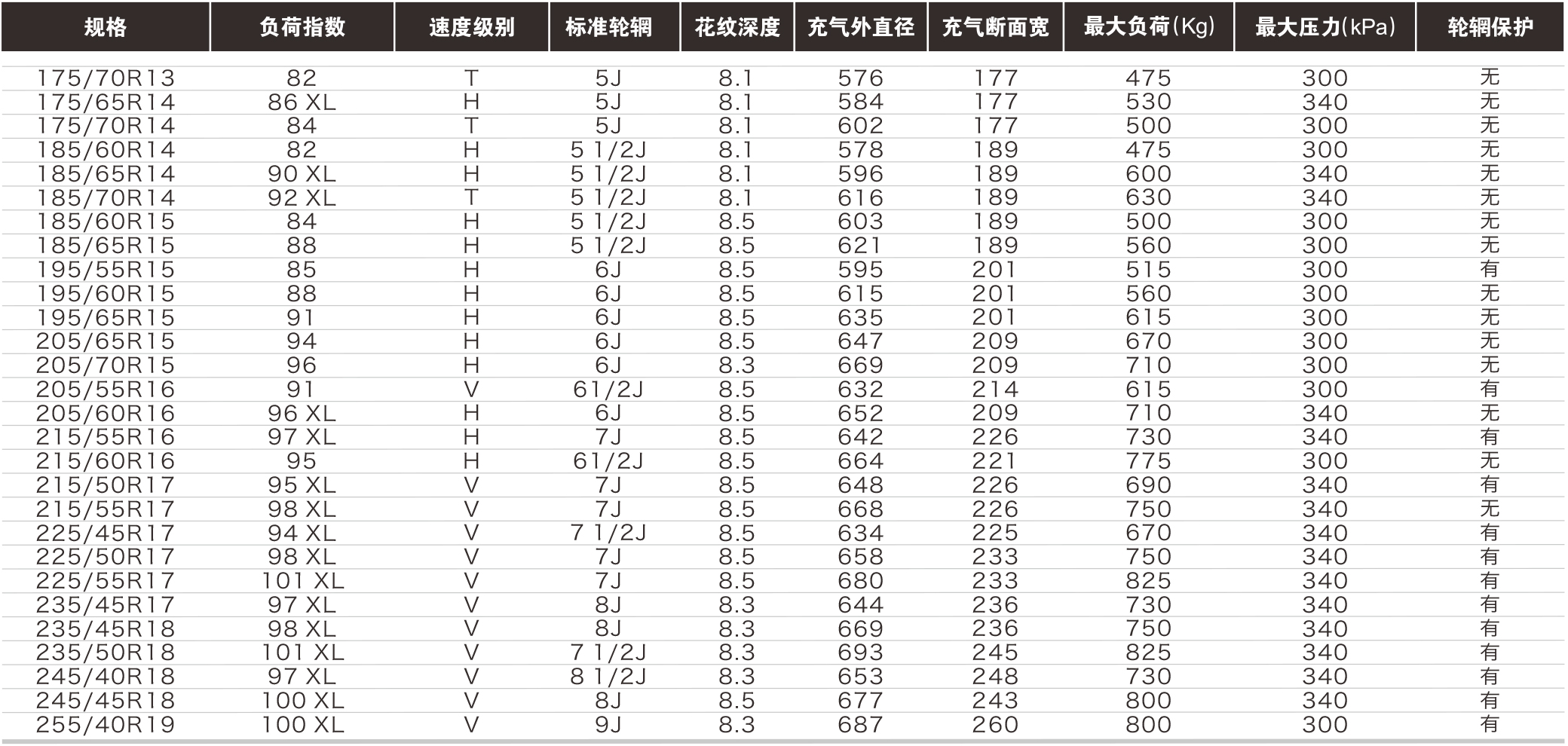 三條縱向排水溝有效防止輪胎雪地天氣側向打滑。