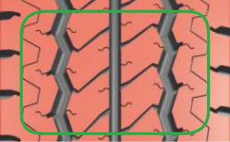 ·胎面接地面積較大?;y塊之間具有加強筋設計。輪胎磨損更加均勻,使用壽命更長。